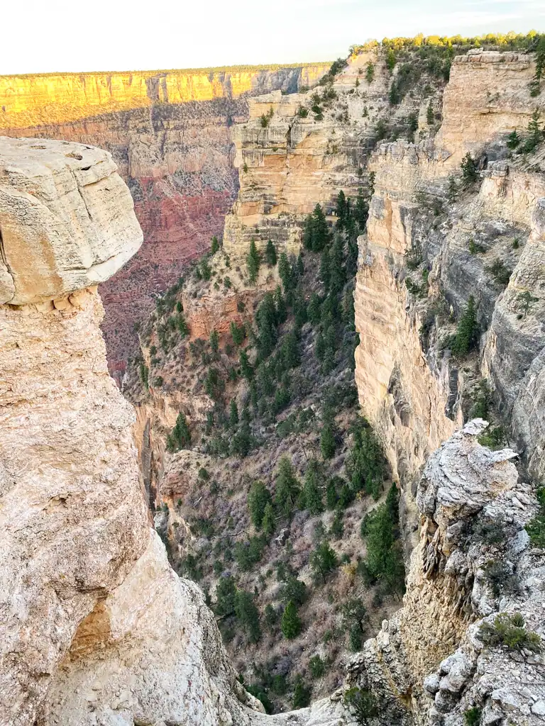 We arrived at the Grand Canyon around 5 pm, just in time for sunset at the Drive 11 viewpoint. Breathtaking doesn’t even begin to describe it. We spent our evening here admiring how the canyon was lighting up golden in the evening light and watched as the cotton candy sky turned from pink to purple. We were mesmerized thinking about how we would be at the bottom of the canyon the next day, and for some reason not at all intimidated that we had to climb out of that canyon too.