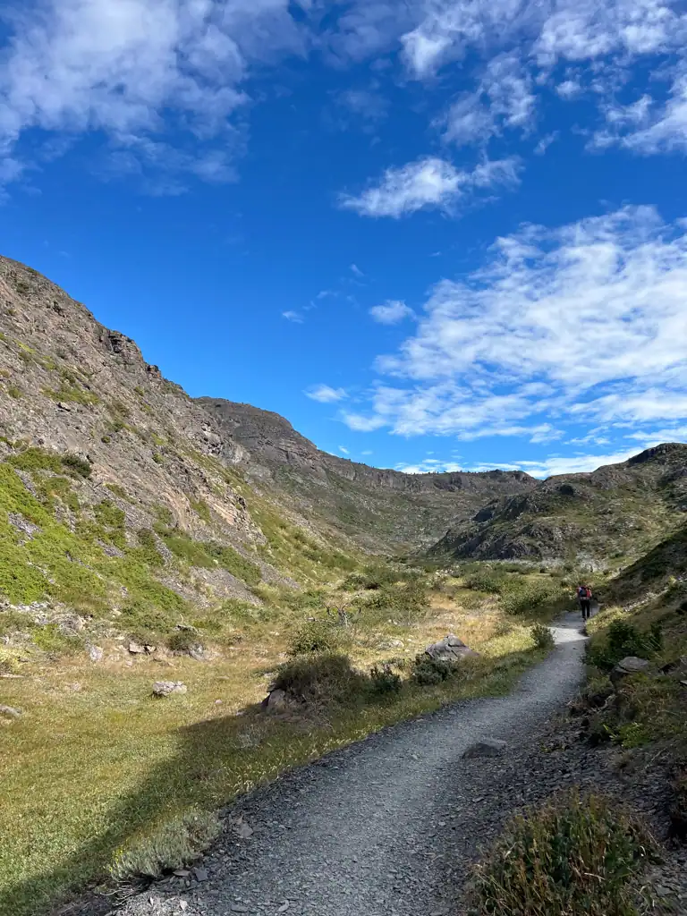 Along the way, we crossed a small wooden bridge, passed trickling streams, and wound our way through gentle, rolling terrain. The W Trek is challenging in terms of mileage and endurance, but technically, the trails are very approachable. No ropes, no scrambling or sharp edges, just steady walking with a heavy pack.