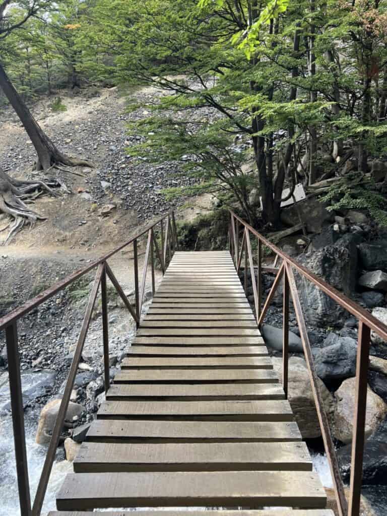 Lower down, another suspension bridge appeared. We crossed the teal Ascensio River, the same ribbon we had seen threading the canyon near Windy Pass. At that point my brain pivoted to the Hotel Las Torres. We had planned to stop there for lunch and a very deserved cocktail before catching our buses.