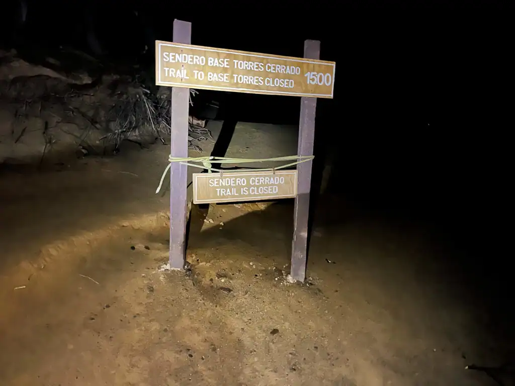 We sat and thought it through. People do this sunrise push every day, so how did we miss this detail? Technically, night hiking is not approved anywhere in Torres del Paine National Park, which explains the sign and rope. In practice, many hikers continue. Keep that context in mind and hike with caution if you plan to see the towers at sunrise. After a quick huddle with the small group around us, we decided to go on.
